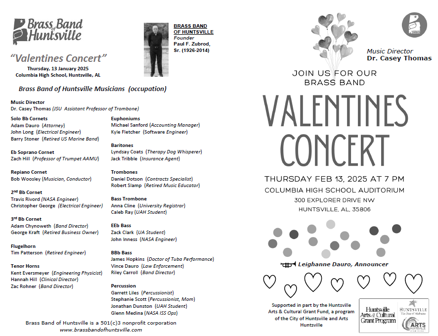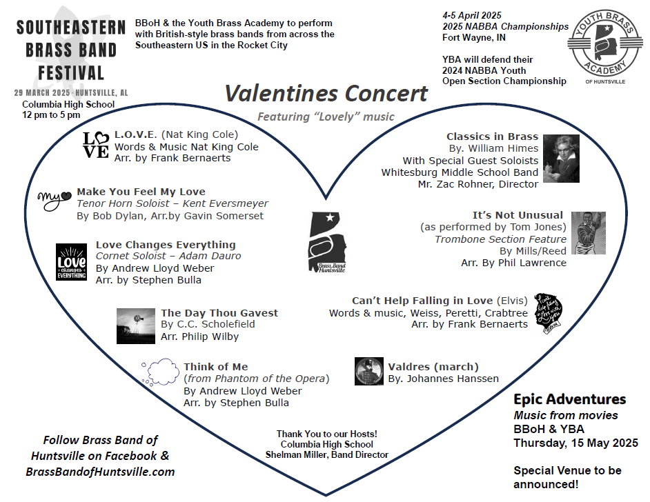 BBoH Valentine’s Concert, 13 February 2025, Columbia High School Auditorium,